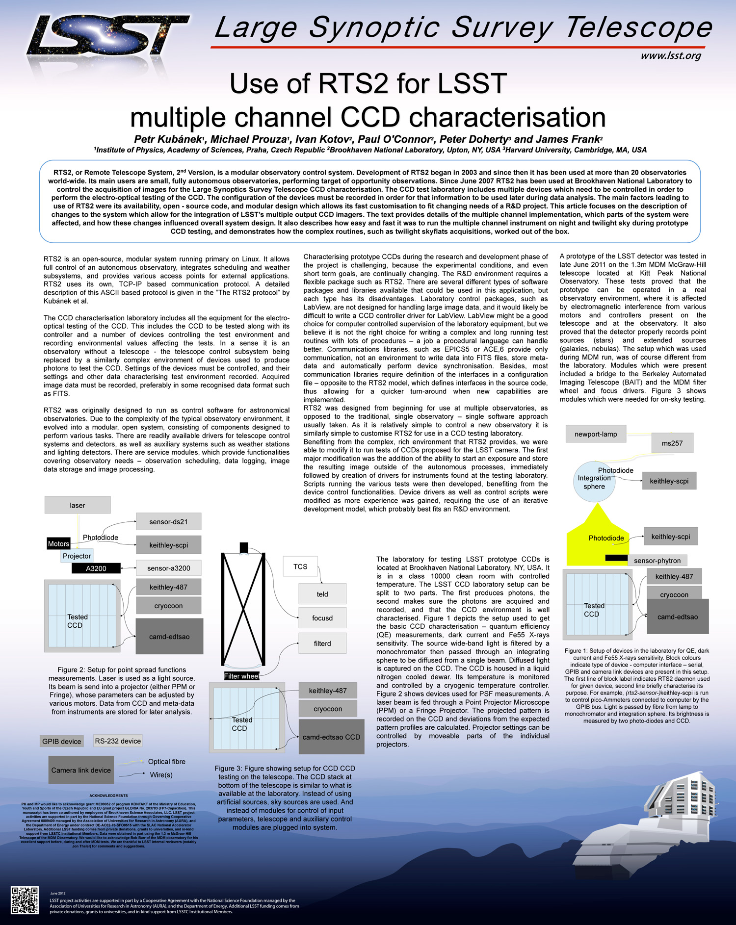 Development of the LSST raft tower modules, Paul O’Connor, Ivan V. Kotov, Peter Z. Takacs, James S. Frank, Stephen Plate, Brookhaven National Lab. (USA); Richard Van Berg, Mitch Newcomer, Univ. of Pennsylvania (USA); Pierre E. Antilogus, Institut National de Physique Nucléaire et de Physique des Particules (France); Hervé Lebbolo, Univ. Pierre et Marie Curie (France); Vanessa Tocut, Institut National de Physique Nucléaire et de Physique des Particules (France); Claire Juramy, Univ. Pierre et Marie Curie (France); Peter E. Doherty, Nathan Felt, Harvard Univ. (USA) [8453-22]